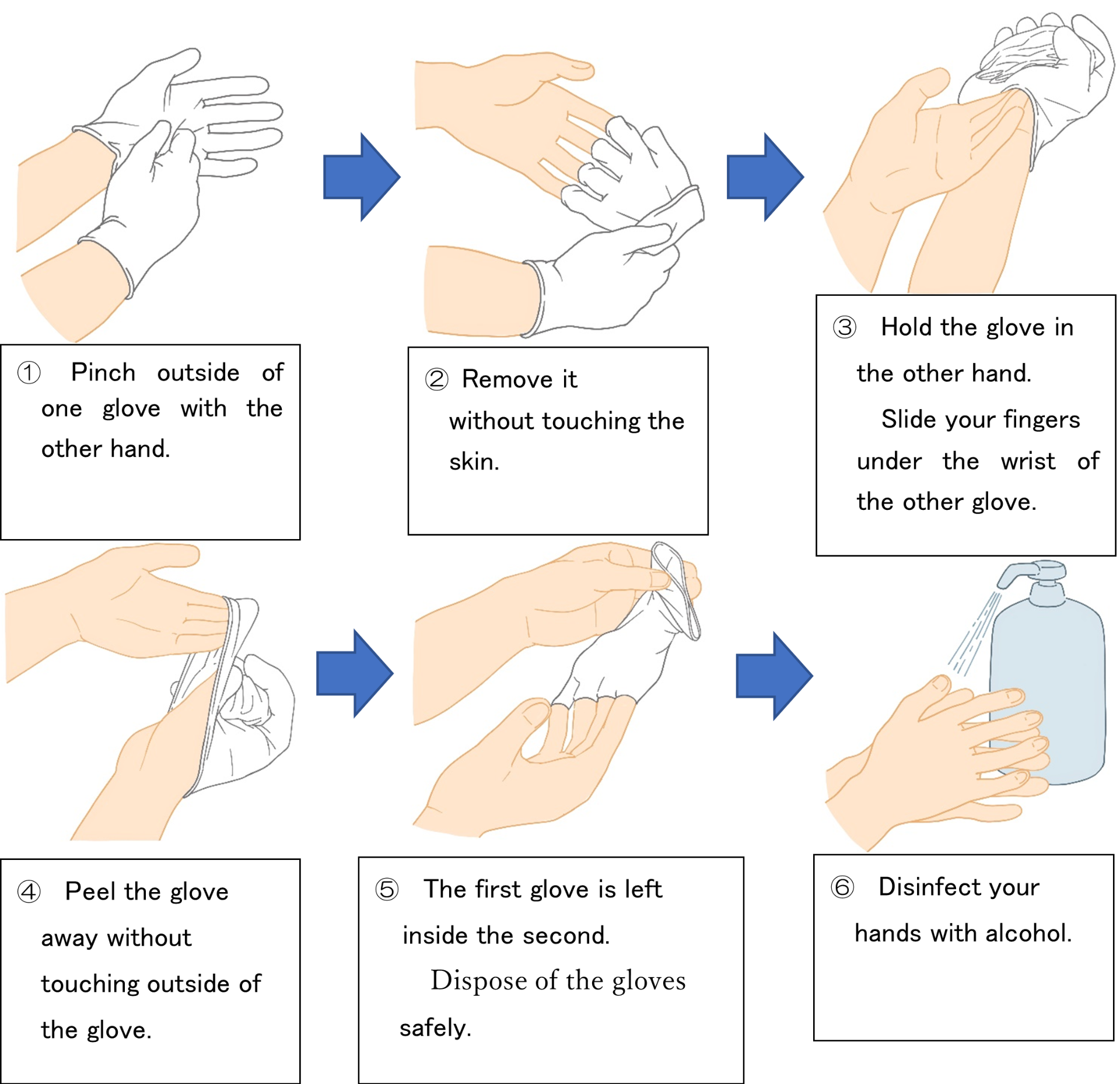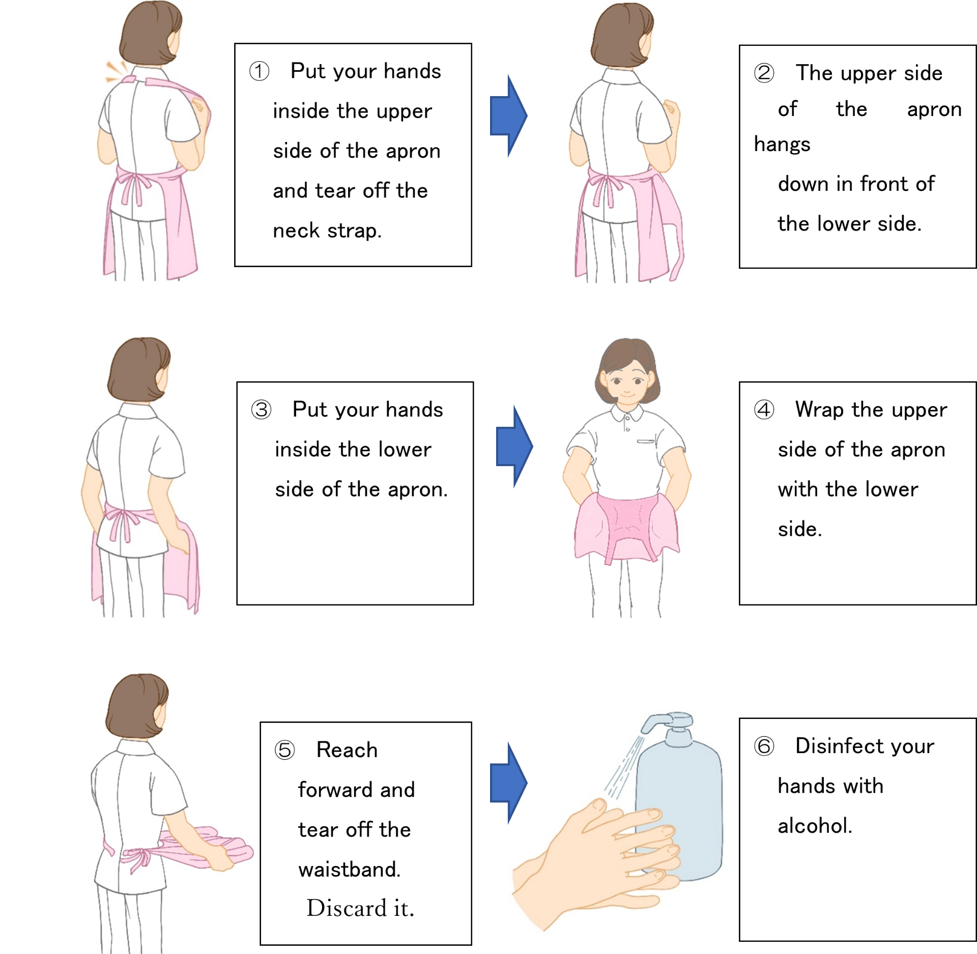 Take off your apron without touching the front side to avoid getting bacteria and viruses on your body.
