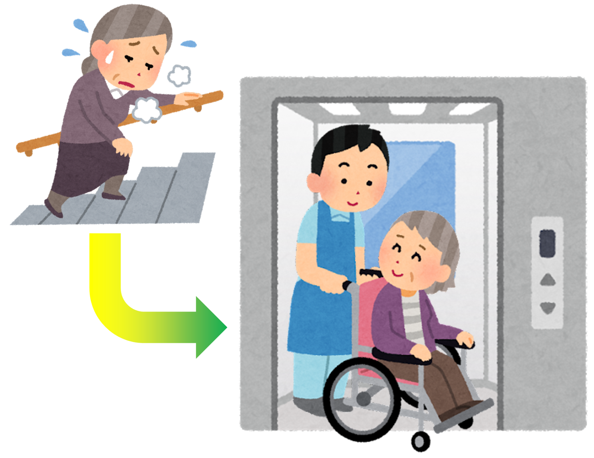 There are elderly (aged people, aged men, aged women) and disabled people (people with disabilities) who have difficulties in their daily lives.
